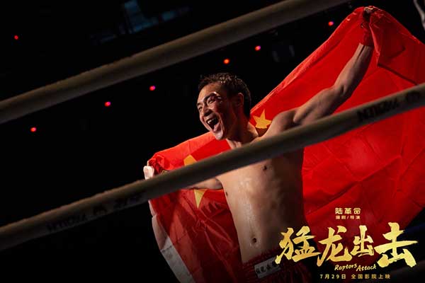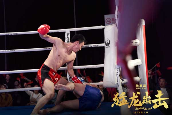 电影《猛龙出击》讲述了自幼在孤儿院长大的张子龙和双目失明的李文慧,一路经历重重困难,李文慧经过努力成为了一名出色的中医推拿师,张子龙突破自我拿下了国际拳王金腰带,终获属于彼此的甜蜜幸福。作为暑期档难得一见的动作题材电影,影片将自由搏击运动的爽快刺激诠释的淋漓尽致。在影片中,不仅可以看到专业的自由搏击运动的拳法训练,也能欣赏竞技性比赛所带来的肾上腺素飙升的乐趣。