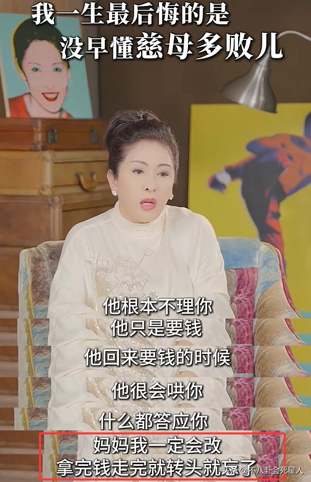 直到五十多岁之后,向太才认清向佑恐怕就是不行,她还直言自己很后悔,当初就不该给向佑一分钱让他挥霍。