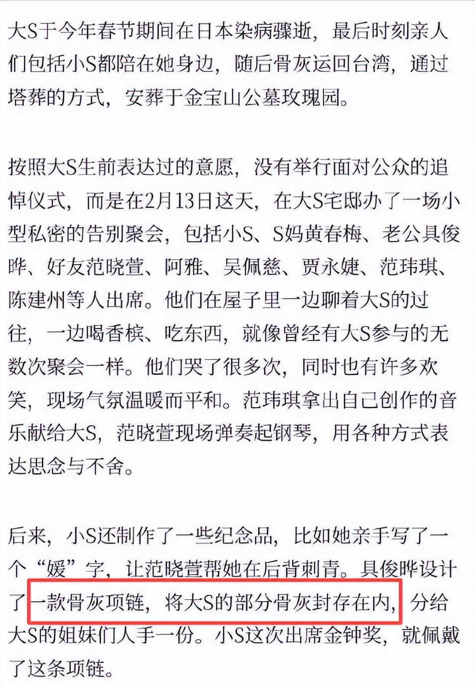 希望她是真诚的思念大S,也祝她早日走出阴霾,复出回归自己的主持事业。