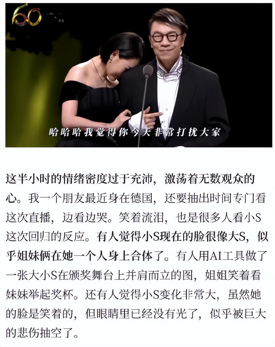 小S这一次无论是从穿着打扮还是神态,都很像姐姐,被网友戏称“姐妹合体”。